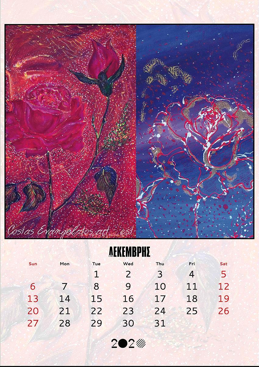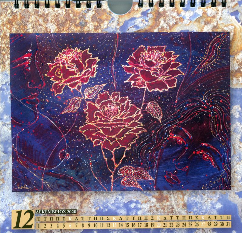 Πάντως, παρόλα τα δισεπίλυτα θέματα και προβλήματα που έχουν ανακύψει από τις καραντίνες, εκδόθηκε και θα κυκλοφορήσει σύντομα το ετήσιο εικαστικό ημερολόγιο μου, με πρόσφατα ζωγραφικά έργα και performance, με τίτλο: ΑΙΣΘΗΤΙΚΕΣ ΕΝΟΡΑΣΕΙΣ.