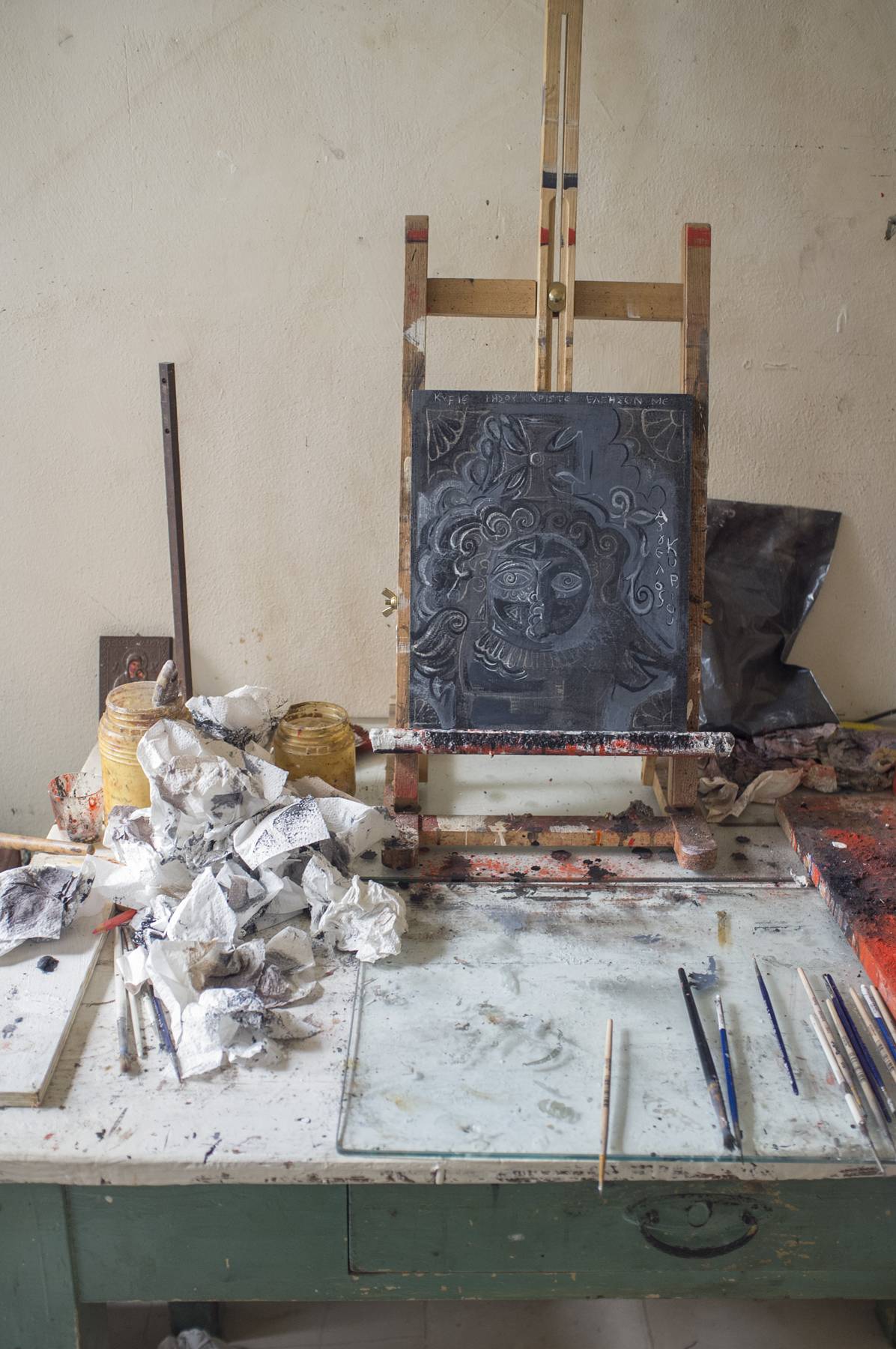 Τα θέματά του είναι σχεδόν πάντα, προσωπογραφίες Αγγέλων ή νικητήριοι άγγελοι επί του κακού ή Άγιοι ιππότες λογχίζοντες δράκοντες, δηλαδή το θέμα είναι κυρίως ένα: η πάλη του καλού και του κακού, η επικυριαρχία του πρώτου, στην ουσία μια αλληγορία των ανθρώπινων παθών.