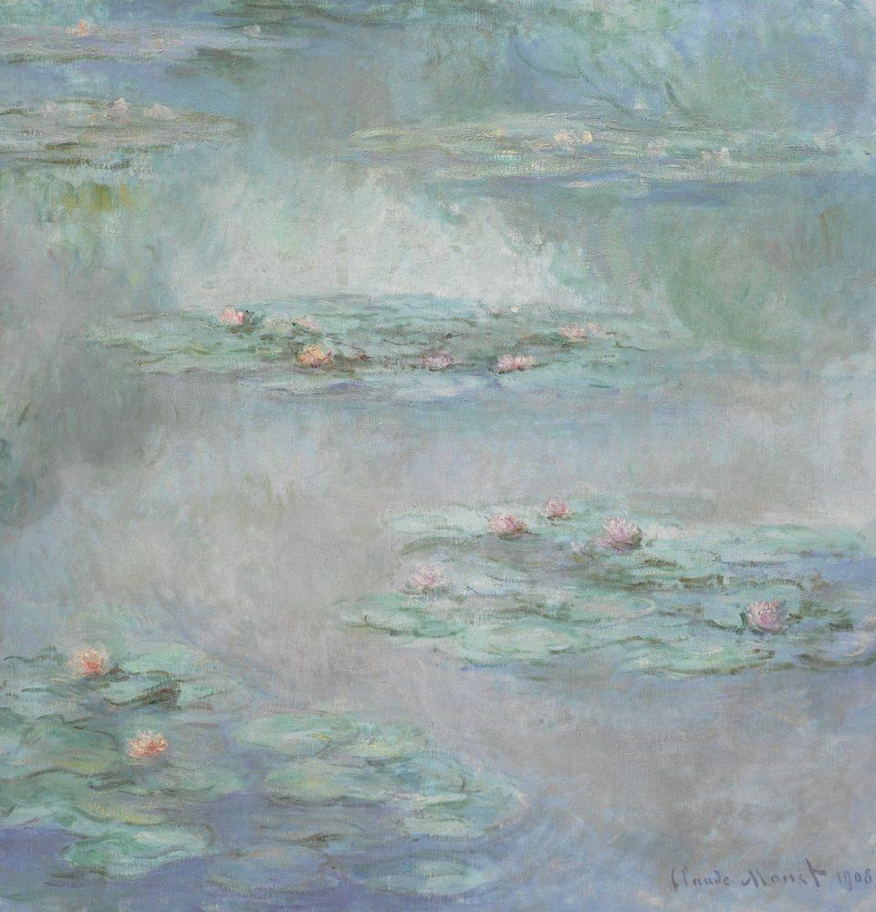 Είκοσι σχεδόν χρόνια μετά τον θάνατο της Καμίλ, το 1899, υπό την συντροφιά της πρώην ερωμένης του Αλις, ο Μονέτ ζωγραφίζει τα πρώτα μπλε και ροζ νούφαρα. Είναι ανατριχιαστικά εντυπωσιακό το πόσο πολύ μοιάζουν αυτά τα έργα με αυτό της νεκρής Καμίλ. Συναισθήματα πένθους εγκλωβισμένα στην καλλιτεχνική συνέπεια που αναδύθηκαν μέσα από τα νερά της λίμνη με τα νούφαρα του κήπου του στο Giverny.
