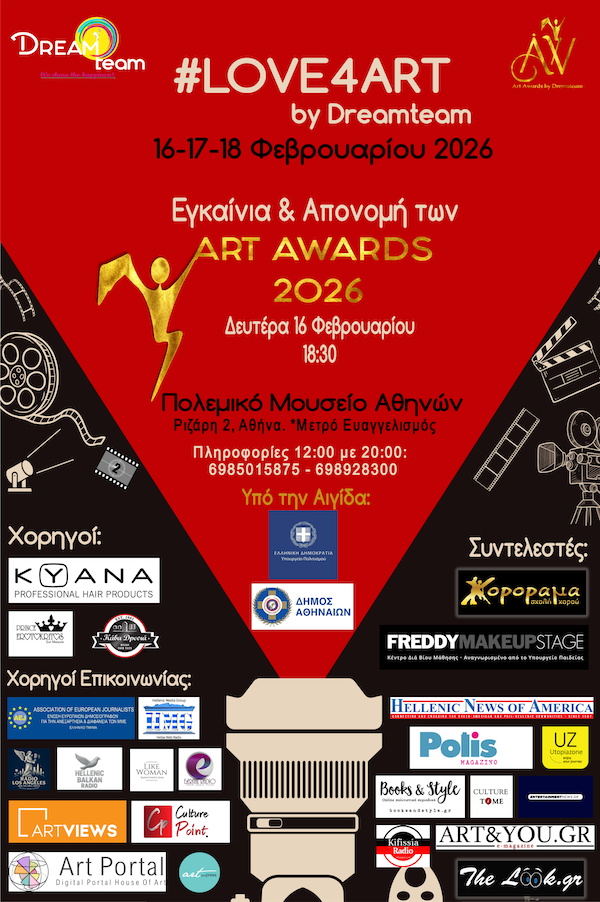 Για τέταρτη συνεχή χρονιά διεξάγονται, η μεγάλη γιορτή Τέχνης LOVE4ART και ο Πανευρωπαϊκός Διαγωνισμός Εικαστικών Τεχνών ART AWARDS bY Dreamteam, που πλέον αποτελούν θεσμό και σημείο αναφοράς για τους καλλιτέχνες Η διοργάνωση τελεί υπό την αιγίδα του Υπουργείου Πολιτισμού και του Δήμου Αθηναίων, επιβεβαιώνοντας τον θεσμικό και πολιτιστικό της χαρακτήρα.