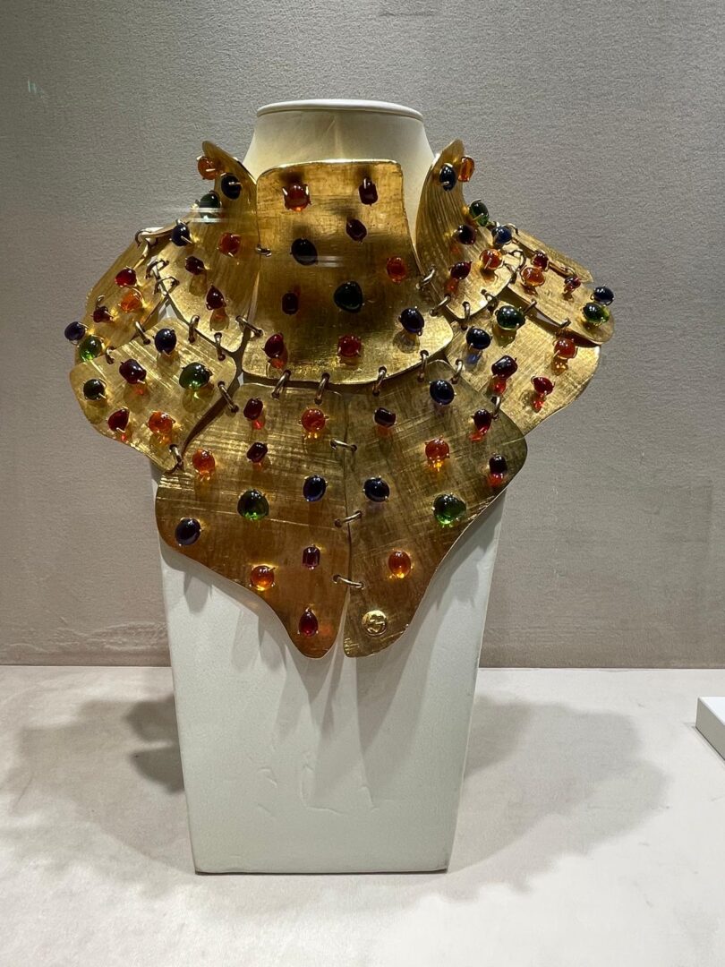 Τα 200 κοσμήματα της συλλογής, που συνιστούν μερικές από τις καλύτερες αποτυπώσεις της ιταλικής δεξιοτεχνίας, θα εκτίθενται στην Αθήνα μέχρι τις 31 Δεκεμβρίου. Η εκθεσιακή διαδρομή, που παρουσιάζεται από τη συνεπιμελήτρια, Beatrice Rossato, εξερευνά την ιστορία του ιταλικού κοσμήματος από τη δεκαετία του ’50 έως το σήμερα, αναδεικνύοντας τον τρόπο με τον οποίο αυτές οι δημιουργίες αντικατοπτρίζουν το ύφος, τις αξίες και την εξέλιξη της κοινωνίας. Ανάμεσα στα εκθέματα βρίσκονται δημιουργίες γνωστών Ιταλικών Οίκων όπως Gucci, Dolce & Gabbana, Armani, Miu Miu, Valentino καθώς και ανεξάρτητων σχεδιαστών και καλλιτεχνών, υπογραμμίζοντας πως η ποιότητα του ιταλικού κοσμήματος μόδας συνδέεται κυρίως με τη δημιουργικότητα, την χειροτεχνική δεξιότητα και την καινοτομία.