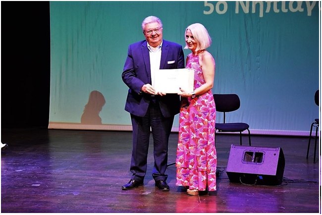 ο κ. Πάνος Κουάνης, Πρόεδρος του Εθνικού Κέντρου Οπτικοακουστικών Μέσων και Επικοινωνίας Η κα Σοφία Γεωργιάδου, Γενική Συντονίστρια του Φεστιβάλ Ταινιών Μικρού Μήκους της Δράμας (εκπροσωπώντας τον κ. Γιάννη Σακαρίδη, Καλλιτεχνικό διευθυντή του Φεστιβάλ)