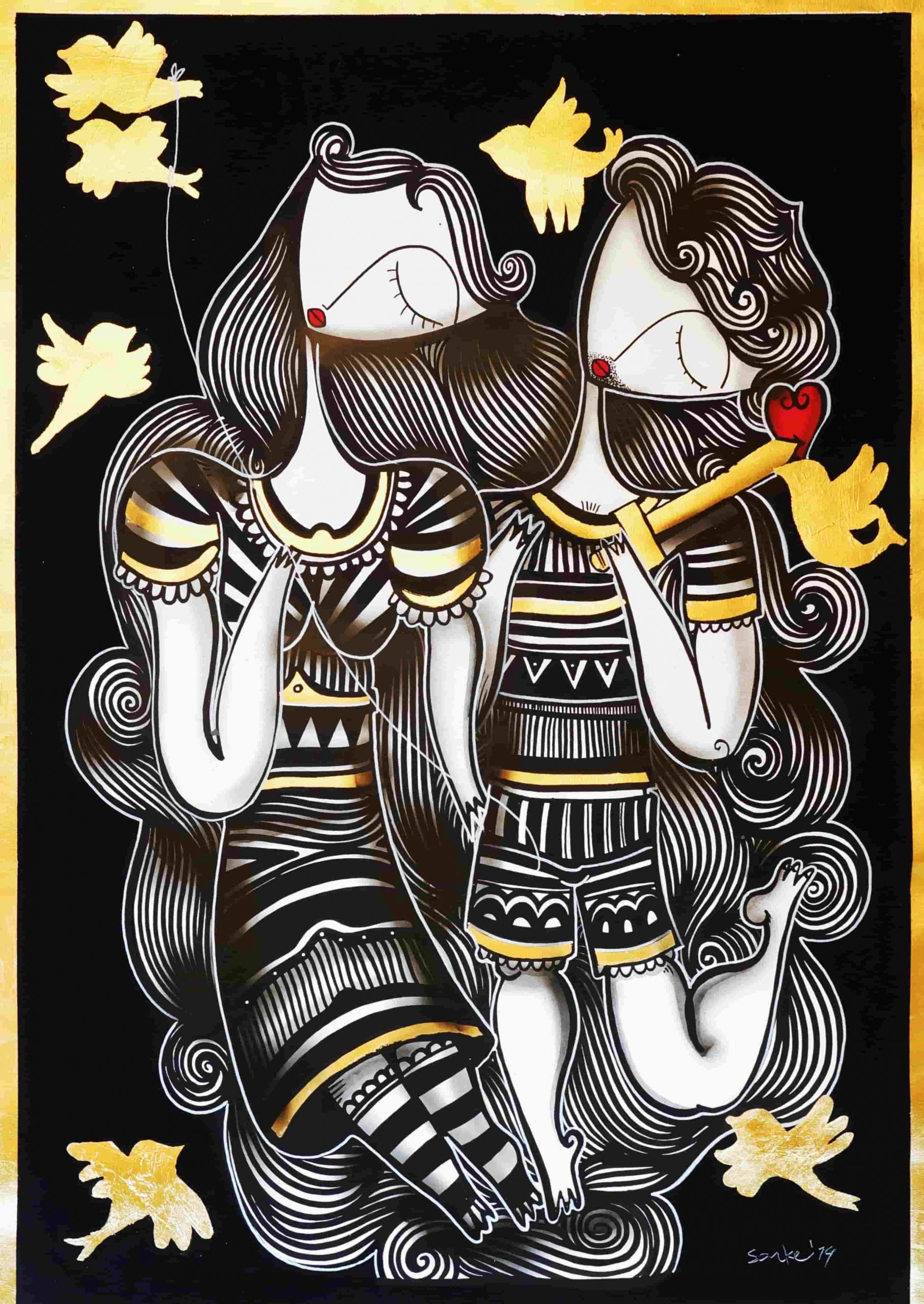 Ο Sonke ο οποίος είναι πολύ γνωστός και από τις street art δημιουργίες του, παρουσιάζει έναν νέο κύκλο έργων, όπου πρωταγωνιστούν οι ασπρόμαυρες γυναικείες φιγούρες του, στις οποίες αυτήν τη φορά δίνει νέες διαστάσεις και πλαισιώνει με νέα πρωτοποριακά στοιχεία. Η κόκκινη καρδιά εξακολουθεί να «χτυπά» δυνατά και να αποτελεί το σήμα κατατεθέν του, ενώ ένα σμήνος ελεύθερων πουλιών, σε πολύχρωμους, λαμπερούς, χρωματικούς τόνους τις περιτριγυρίζει, θέλοντας να προσθέσει κίνηση στην αδιάσπαστη, μοναδική γαλήνη τους. Ο Sonke δημιουργεί μελαγχολικές αλληγορίες, σ ένα πολυδύναμο ασπρόμαυρο σύμπαν που χαρακτηρίζεται από τη λιτή μεγαλοπρέπεια του.