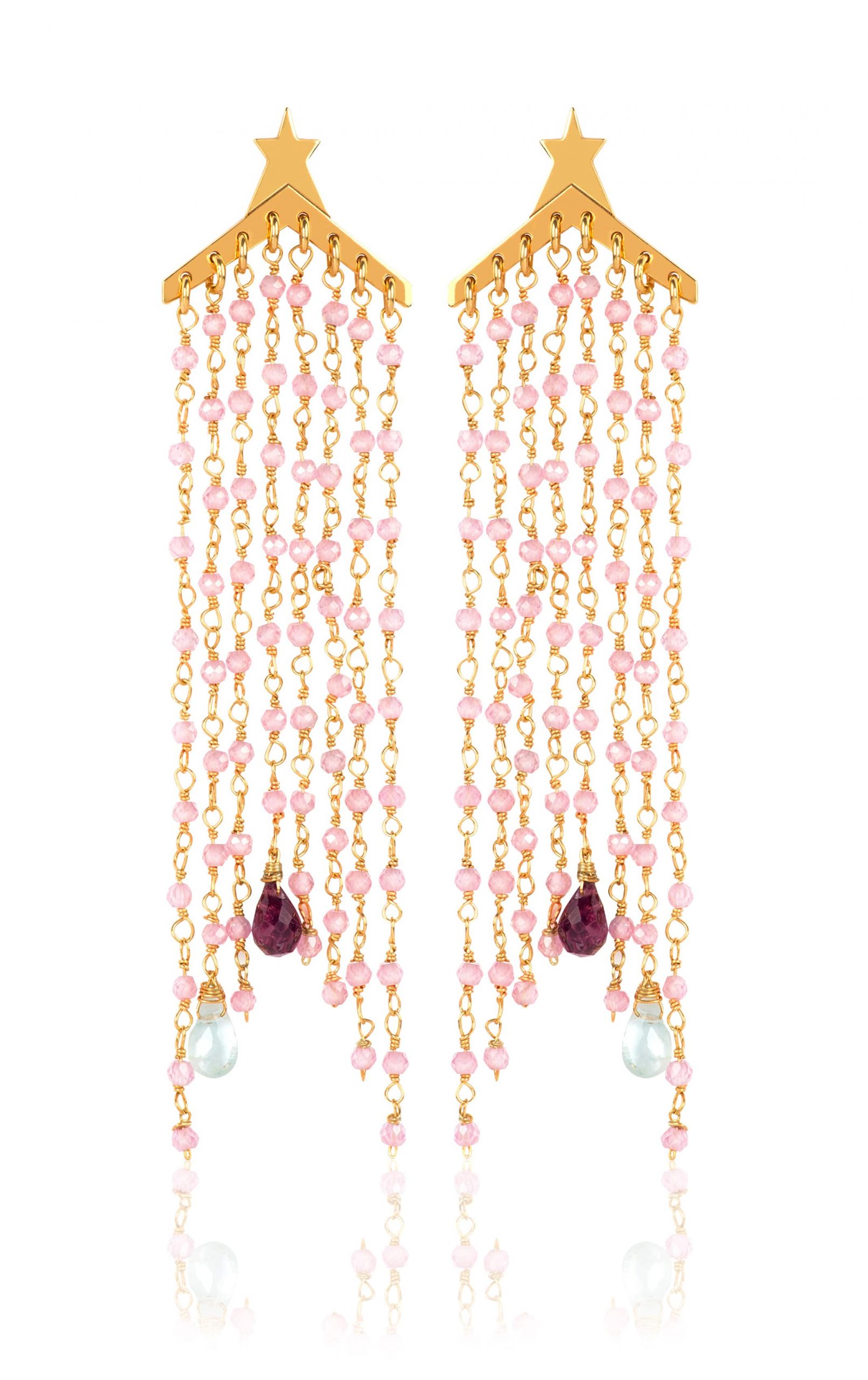 -Τα μέταλλα που χρησιμοποιώ είναι ασήμι 925 επιχρυσωμένο ή επιπλατινωμένο και χρυσό σε περιορισμένα κομμάτια. Τα περισσότερα συνδυάζονται με πολύτιμους ή ημιπολύτιμους λίθους όπως ζαφείρια, ρουμπίνια, aquamarines, τουρμαλίνες, ροζ quartz και άλλα πολλά. Το αποτέλεσμα είναι γυαλιστερές επιφάνειες με διακριτικές λάμψεις που παραπέμπουν σε στοιχεία του σύμπαντος.