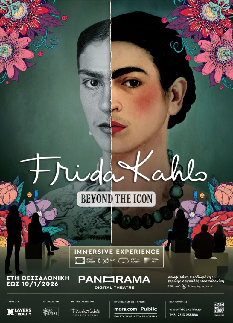 Η έκθεση Frida Kahlo – Beyond the Icon Immersive Experience, συνεχίζεται στη Θεσσαλονίκη για όλη τη σεζόν, μέχρι τις 12 Ιανουαρίου 2026, στη νέα στέγη ψηφιακών εκθέσεων και παραστατικών τεχνών Panorama Digital Theatre, που δημιουργήθηκε ειδικά για την υποδοχή immersive εμπειριών και εκθέσεων.