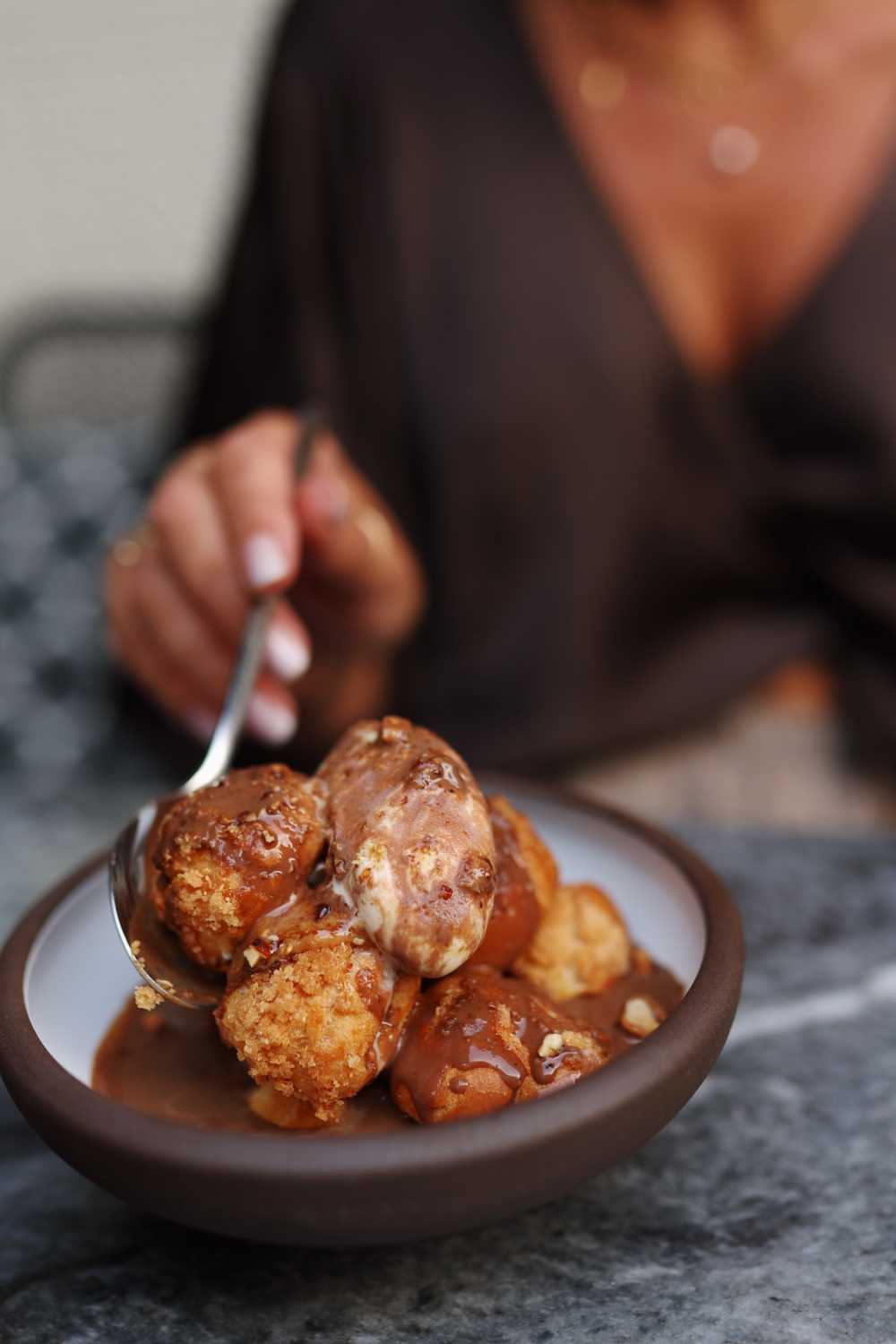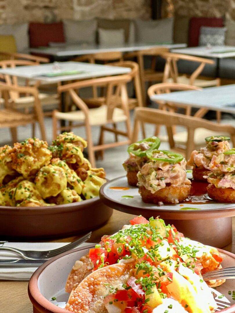 Όλα αυτά τα βιώνουμε σε ένα πλακόστρωτο σοκάκι στου Ψυρρή, με μαρμάρινα τραπεζάκια στον πεζόδρομο, είτε στην ταράτσα με θέα το Αστεροσκοπείο Αθηνών, τον κήπο με τη γυάλινη ανοιγόμενη οροφή, τον εσωτερικό χώρο με τον πέτρινο τοίχο και την τεράστια μπάρα. ……