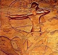 Τα ανάγλυφα στην πρώτη αίθουσα του Μεγάλου Ναού του Αμπού Σιμπέλ αναπαριστούν τις μάχες του φαραώ Ραμσή  του Δεύτερου στο πρώτο τέταρτο του 13ου αιώνα π.Χ., δίνοντάς μας τη δυνατότητα να γνωρίσουμε τον οπλισμό και τις πολεμικές τακτικές της εποχής.  Σε κάποια από αυτά βλέπουμε «στιγμιότυπα» από τη μάχη του Καντές (1284 π.Χ.) μεταξύ Αιγυπτίων και Χετταίων.