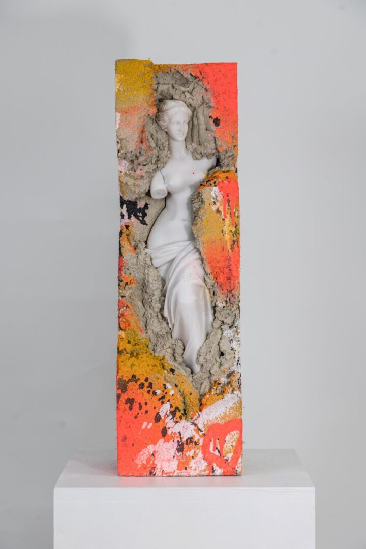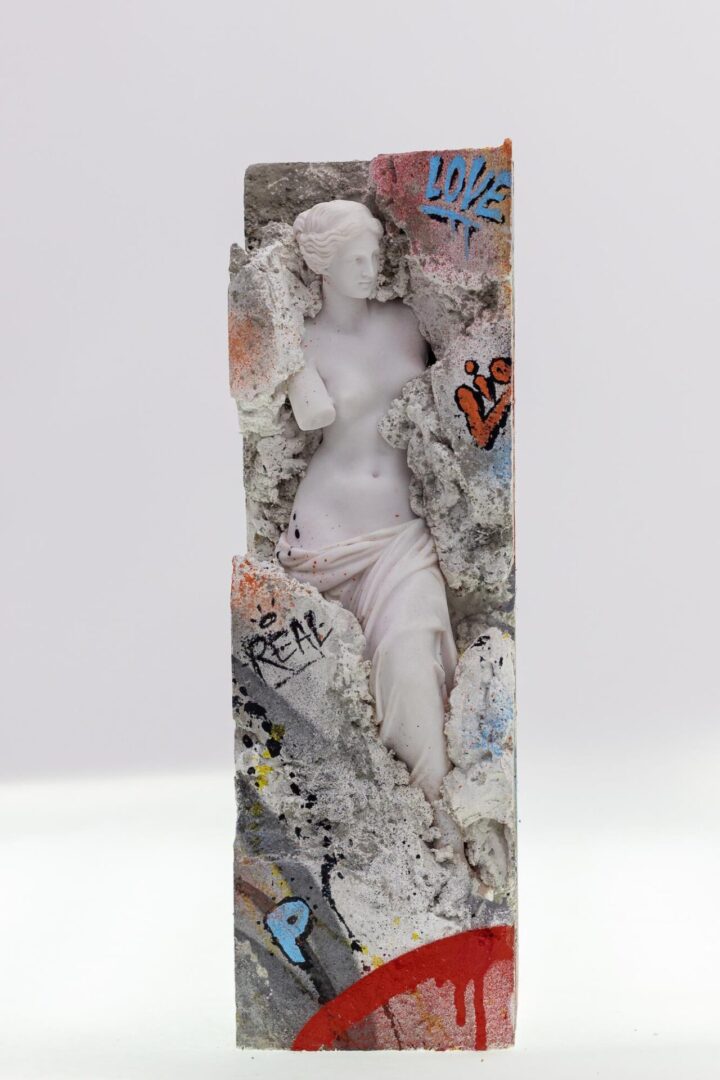 Επίσης δεν διστάζει να κατακερματίσει και να ανασυνθέσει με τον δικό του τρόπο, παρεμβαίνοντας εικαστικά με τεχνικές που χρησιμοποιεί η μοντέρνα τέχνη και η urban κουλτούρα, σε αντίγραφα από αιώνια σύμβολα, μοναδικά γλυπτά, όπως τη Νίκη της Σαμοθράκης, έναν υπέροχο Απόλλωνα, όχι από ασέβεια, αλλά όπως λέει ο ίδιος: «η τέχνη της κλασικής εποχής είναι μοναδική και αξεπέραστη. Ανάλογα, τόσο τέλεια αγάλματα δεν έχουν γίνει ξανά ποτέ, ούτε πρόκειται. Με τον κατακερματισμό τους θέλω να δείξω, ότι εξακολουθούν να διατηρούν τη μεγάλη τους δύναμη και λάμψη, ακόμα και όταν γίνονται κομμάτια. Δεν με ενδιαφέρει να δημιουργήσω κάτι άψογο, ή τέλειο. Κάτι τέτοιο θα ήταν ανιαρό. Συχνά καταφεύγω στον βανδαλισμό των έργων μου, ή χρησιμοποιώ νέον ώστε να προσδώσω μεγαλύτερες εντάσεις στον θεατή.»